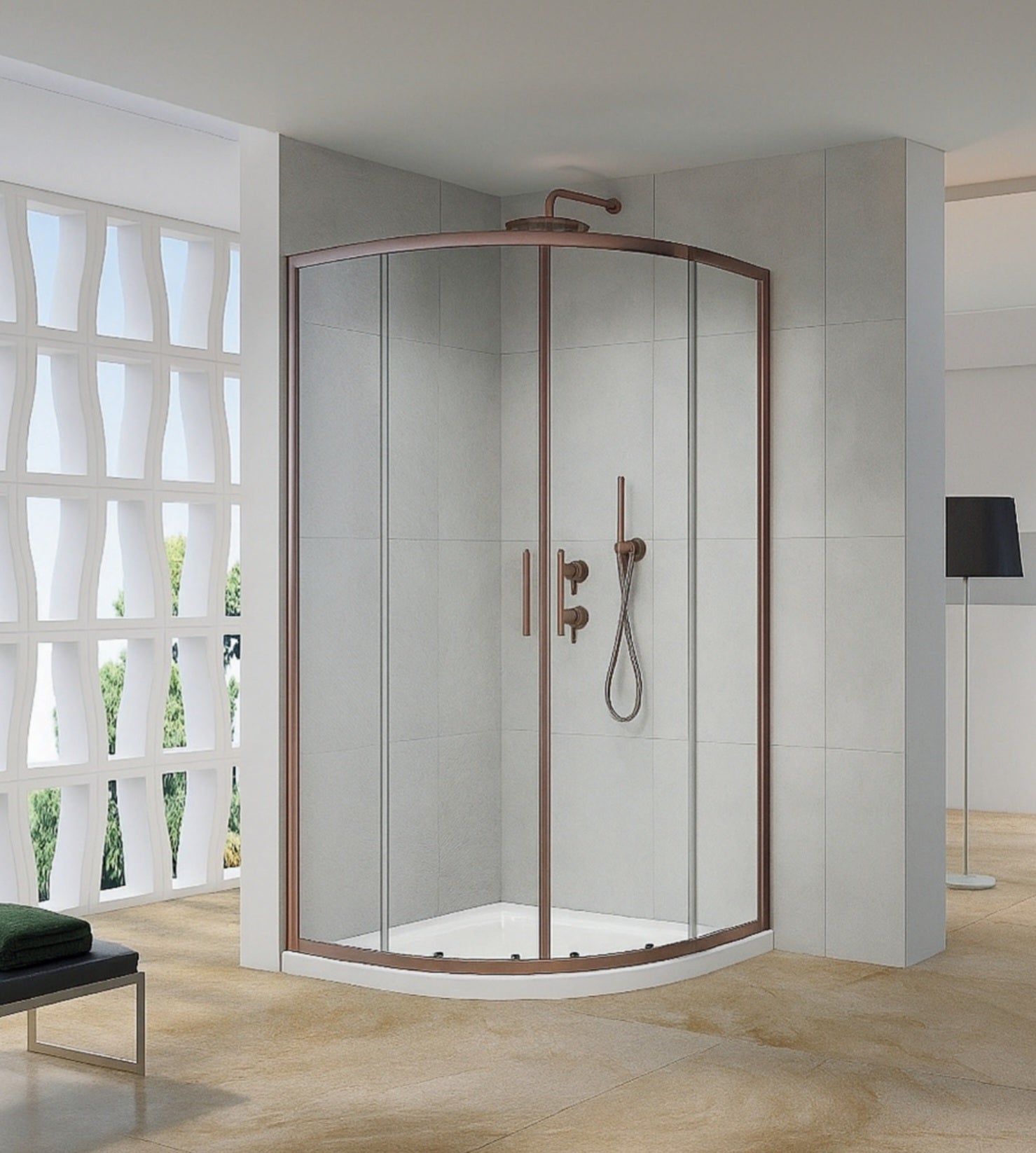 Luxury Brushed Bronze Offset Quadrant Shower Enclosure - 8mm Glass